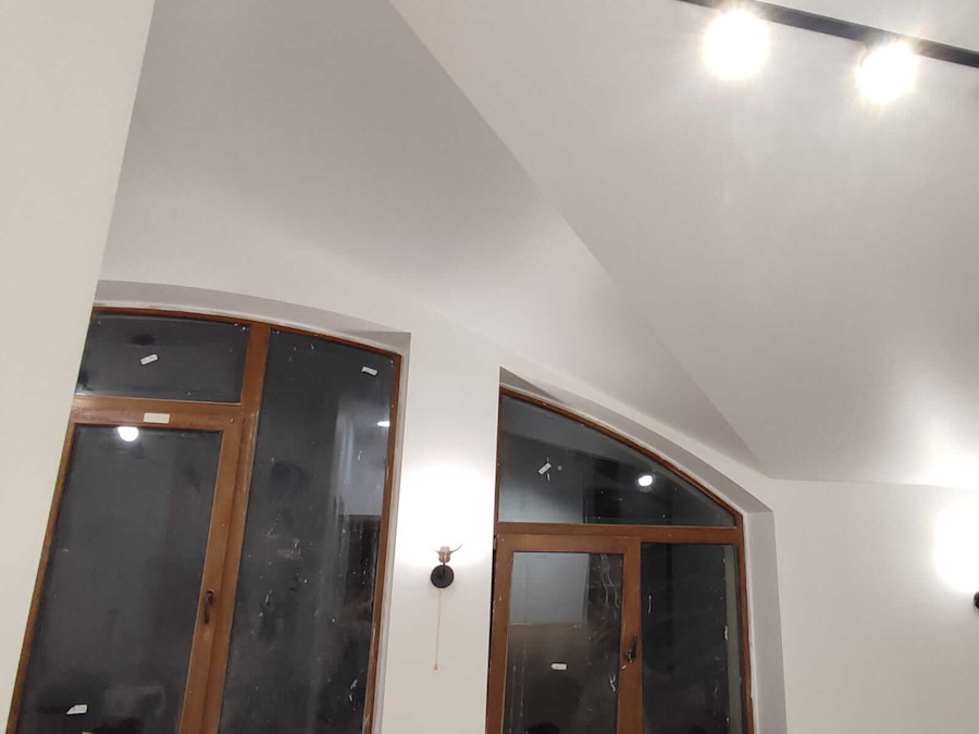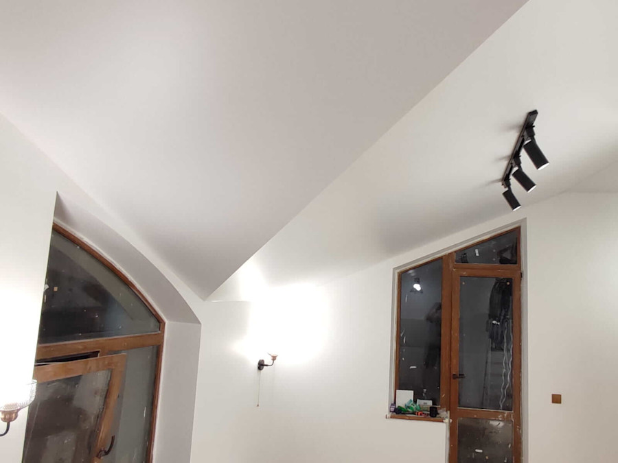 Мансардные потолки или потолки со сложной геометрией – подразумевают расположение полотен под разными углами. Что требует большого профессионализма, но эффект того стоит.